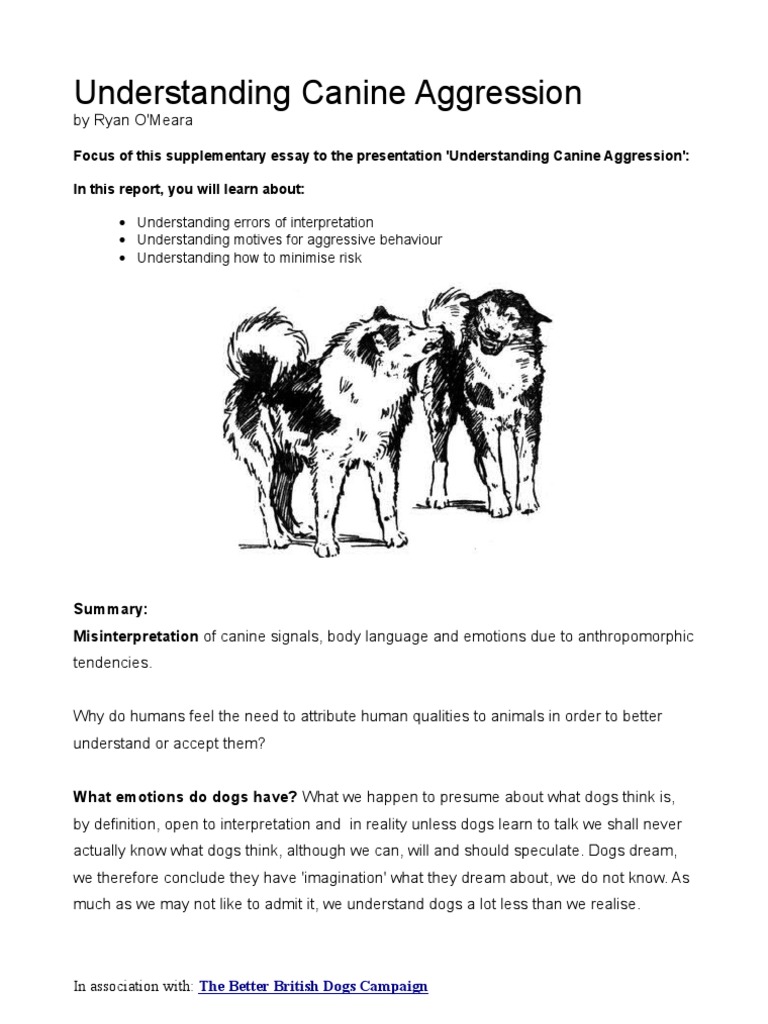 Aggression in dogs is usually serious. Dog food aggression (sometimes called canine possession aggression or food guarding) is a dominance issue, it is serious and needs to be addressed immediately. Canine aggression poses serious public health and animal welfare concerns. Not surprisingly, canine aggression is the most common behavior problem treated by veterinary recognizing more subtle signs and diffusing tensions are critical in treating aggression. Learn vocabulary, terms and more with flashcards, games and other study tools.